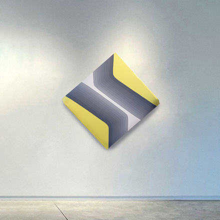 Drawing inspiration from the natural order and the disruptive impact of human presence, her works unfold as imaginary landscapes composed of organic and geometric forms, often structured around gradients of color and light. Within these spaces, recurring symbols - the moon, sun, circle, or wave - appear as archetypes of universal harmony, anchoring her compositions in a timeless dialogue between nature and the human spirit.